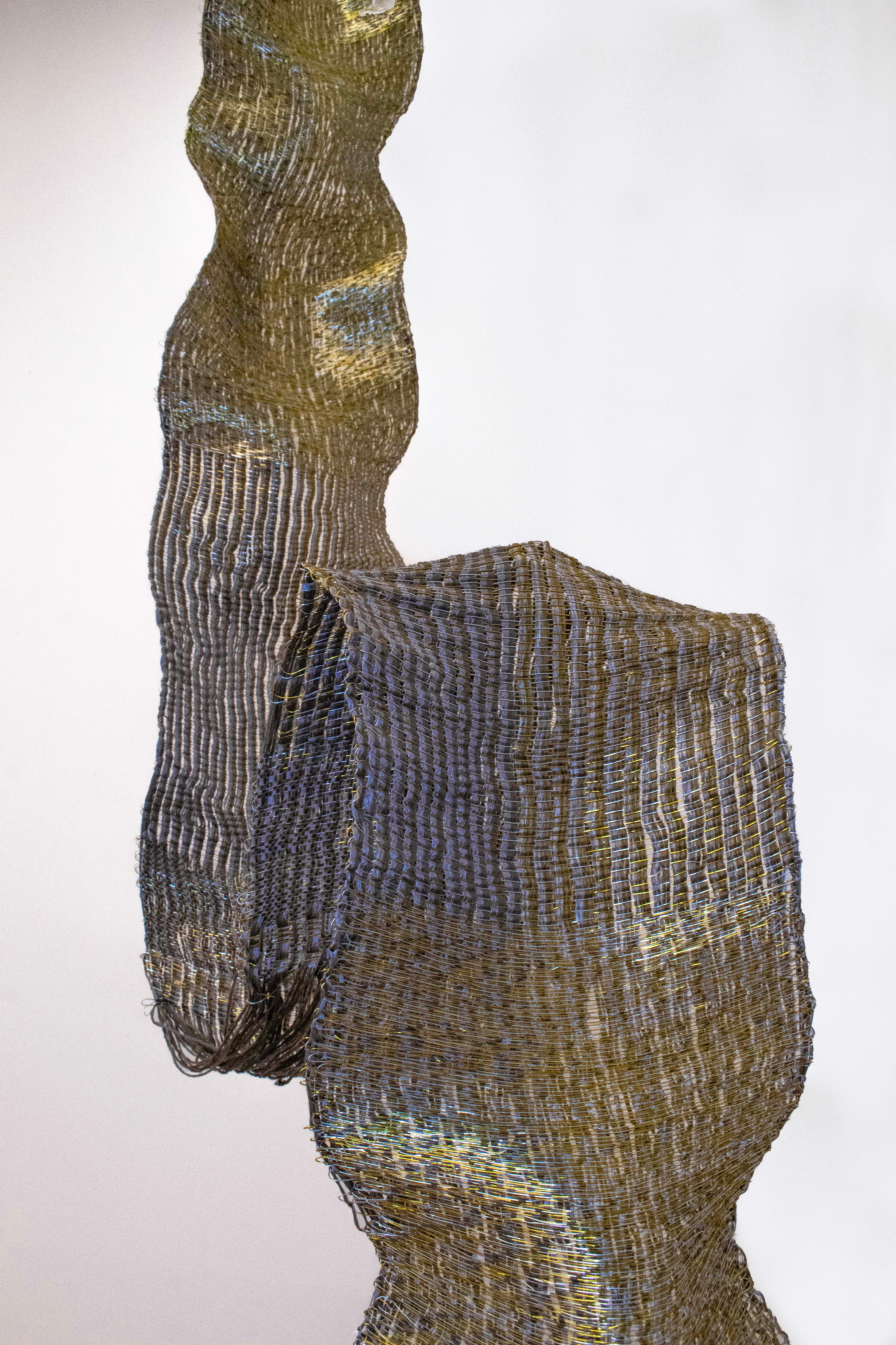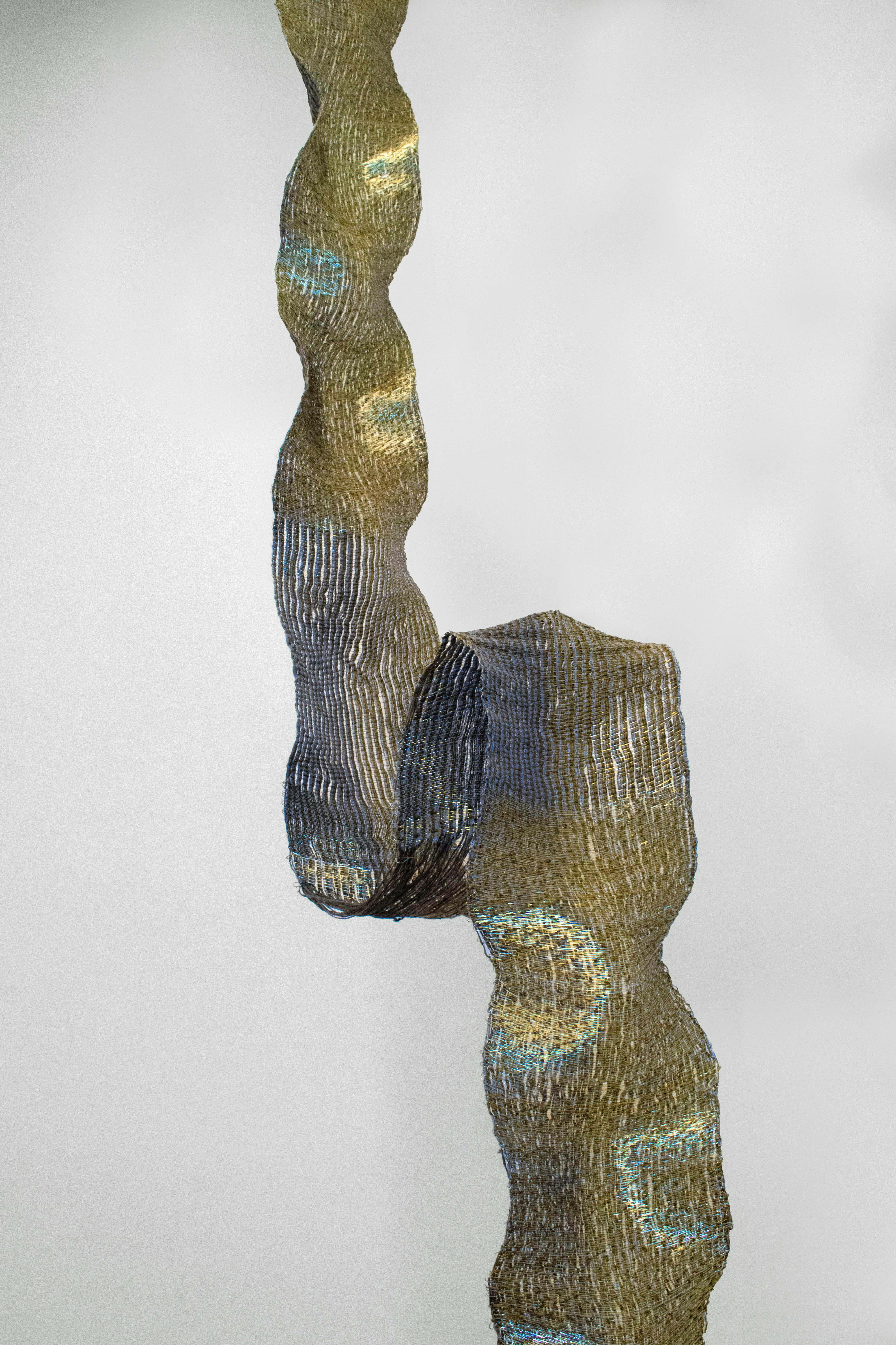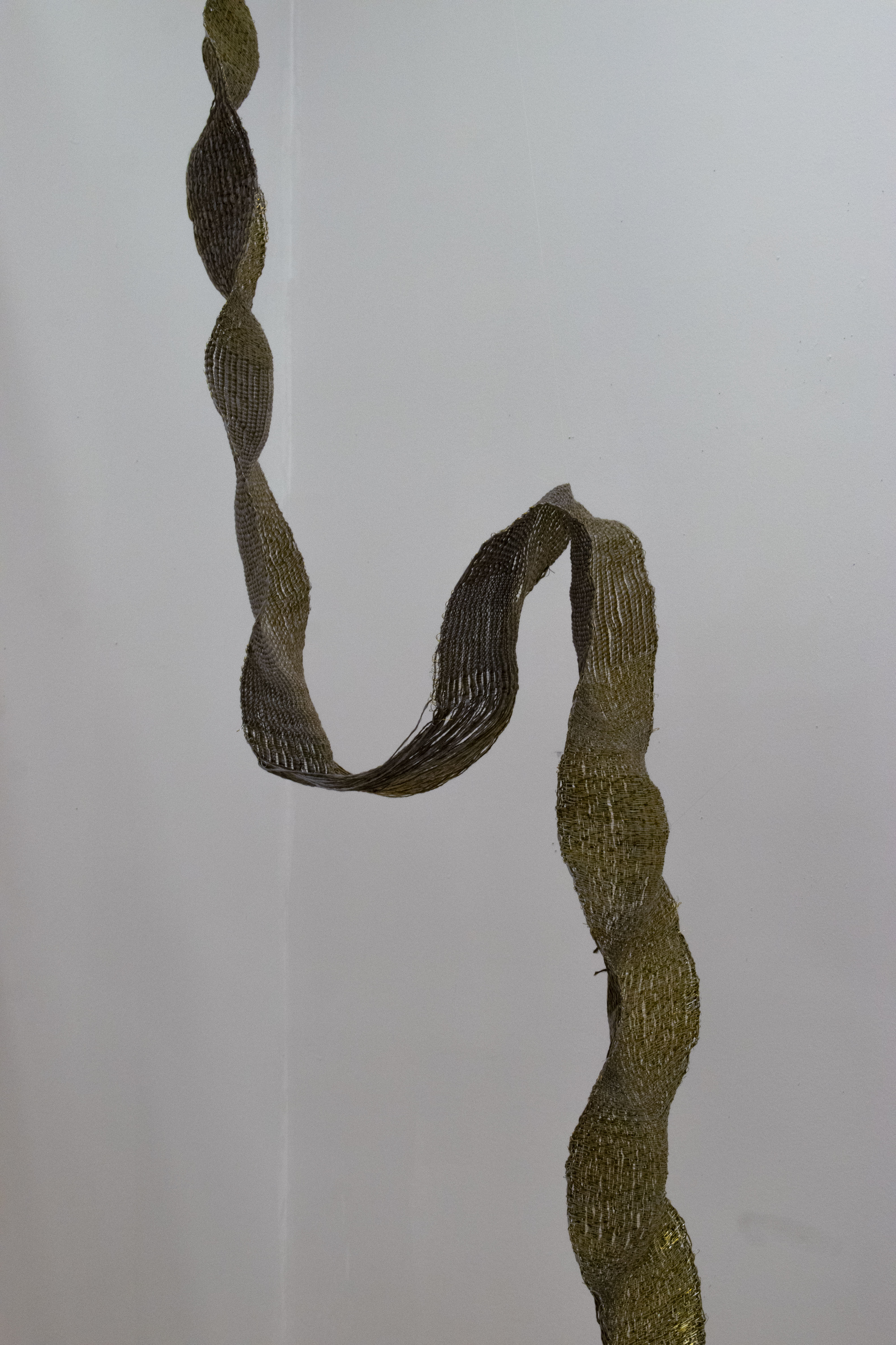 For this installation, ‘Slithering Greed’, copper is multitudinous. Firstly, its luster acts as a visual metaphor for how the shine of stones and metals on Earth’s surface attracts humans. Secondly, the conductive property of copper adds a metaphorical aspect to the installation, where it denies being touched or controlled by the external environment, as it can harm them in return. Furthermore, the malleability of copper wires allowed me to weave a flowy structure, which is boundless and adds movement, just like the greed of humans and their willingness to keep going and digging.
